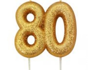Number 80 Gold Glitter Candle 80th Birthday Gold Candle Etsy